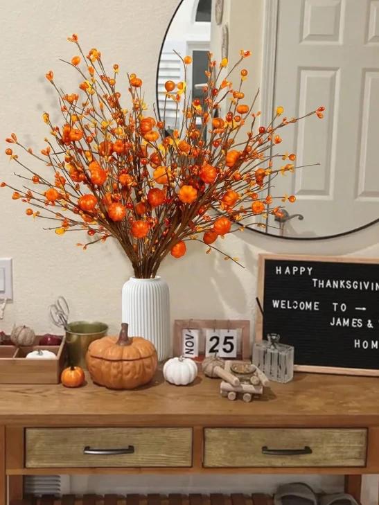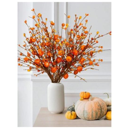 Pumpkin Berry Canes Pumpkin Berry Branches Autumn Artificial Berry Stems Berry Branches Floral Arrangement With Fake Pumpkin Decoration Autumn Flowers Suitable For Fall Decoration Halloween Thanksgiving Home Vase Decoration Harvest Festival Decoration
