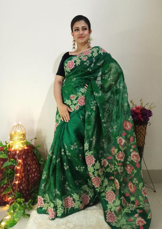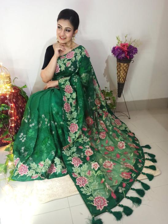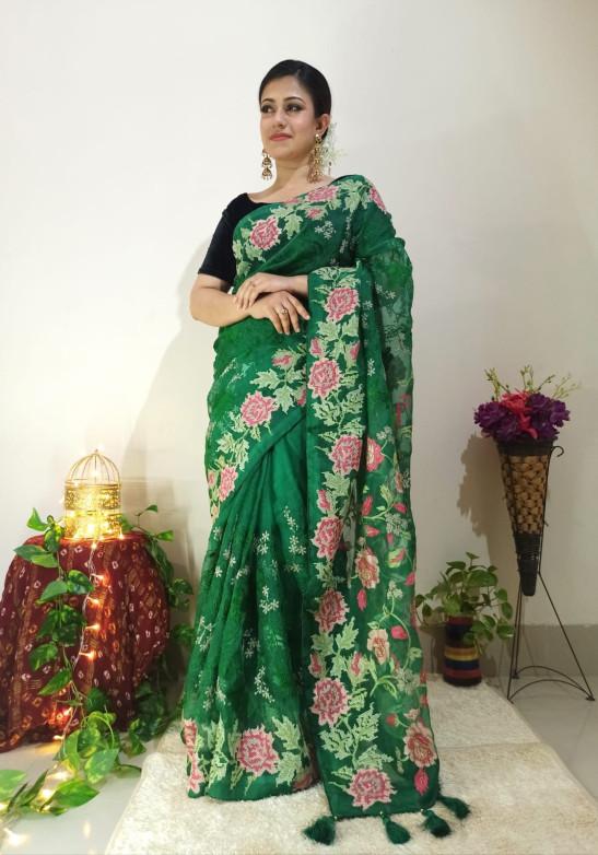Pure Maslin Saree With Embroidery Work.
