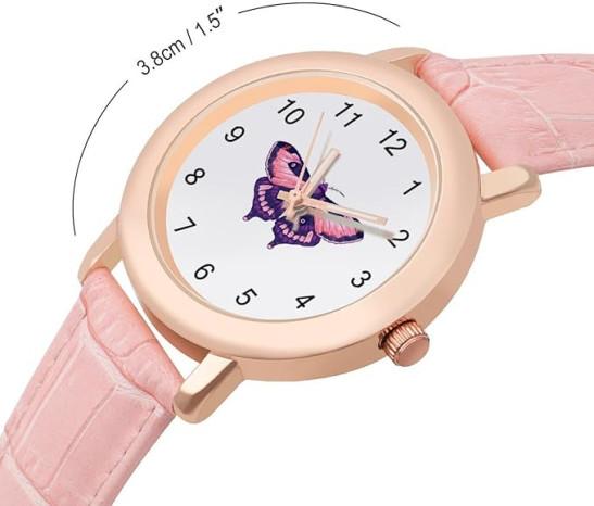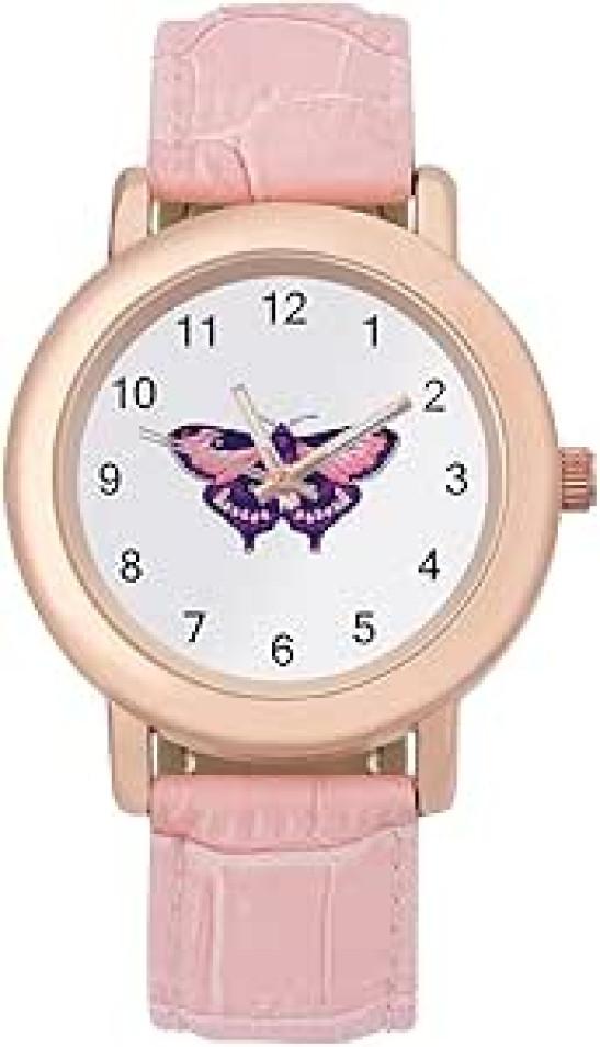 Purple Moth Fashion Watch For Women Easy Reader Novelty Round Watches Slim Quartz Casual Dress Wrist Watch Pink