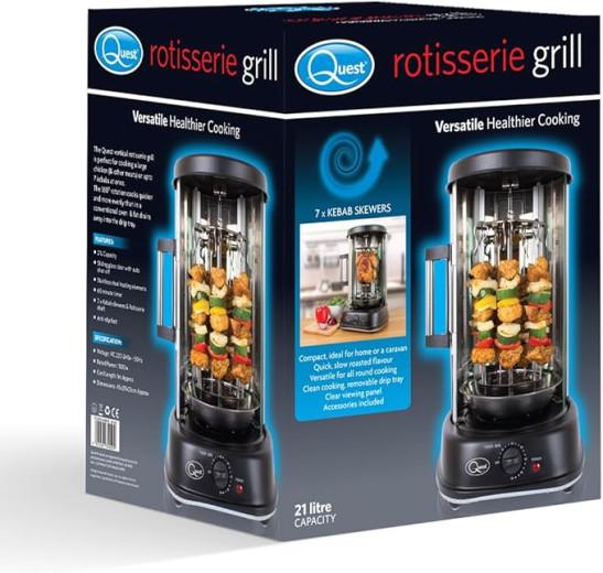 Quest 34020 Electric Rotisserie Grill / Cooks Kebabs, Skewers and Roasts / 60 Minute Timer / Sliding Glass Door / Auto Shut-Off / 1500 W [Energy Class A+]