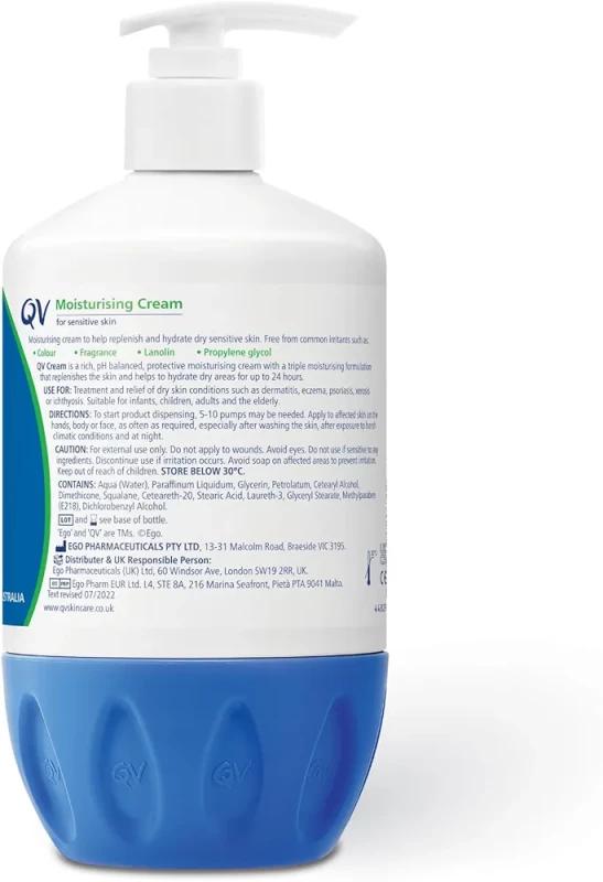 QV Cream with 10% Glycerin (1050g) Rich Protective Moisturiser for Sensitive, Dry Skin, Fragrance Free,