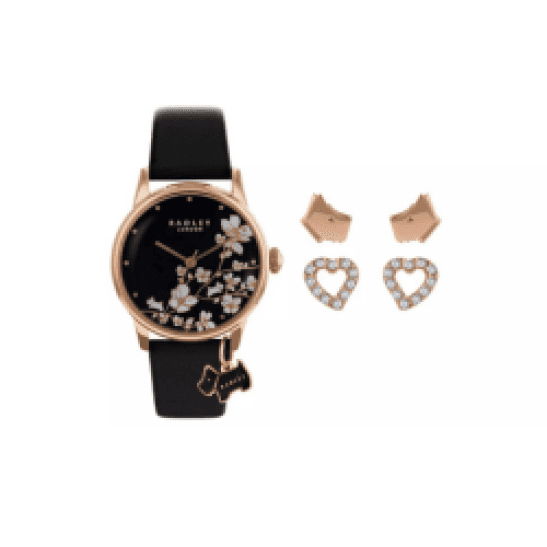 Radley Ladies Black Leather Strap Watch & Earrings Gift Set
