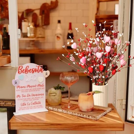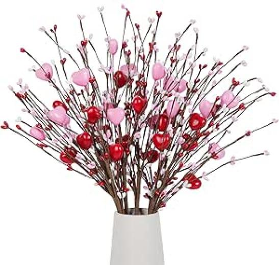 RECUTMS Valentine’s Day Picks Gifts, 6 Pcs Artificial Pink Red Berry Banquet Heart Shaped Stems for DIY Flowers Arrangements Wedding Anniversary Home Party Table Centerpiece Living Room Decorations