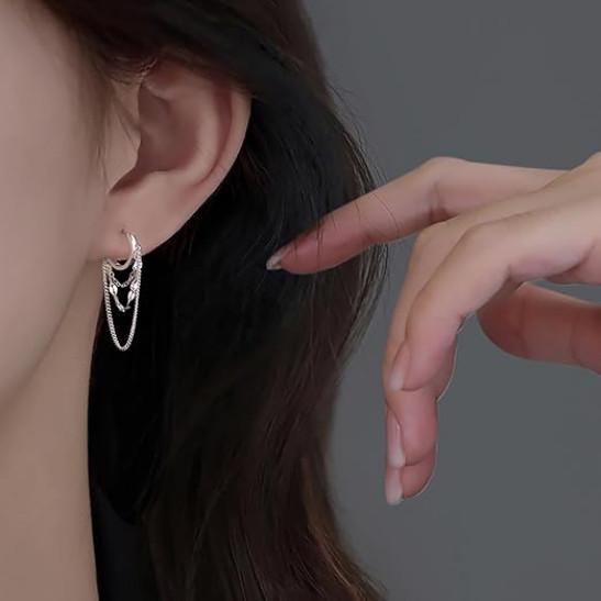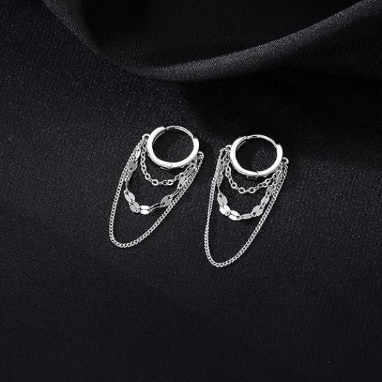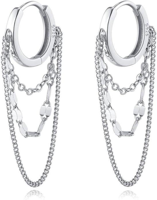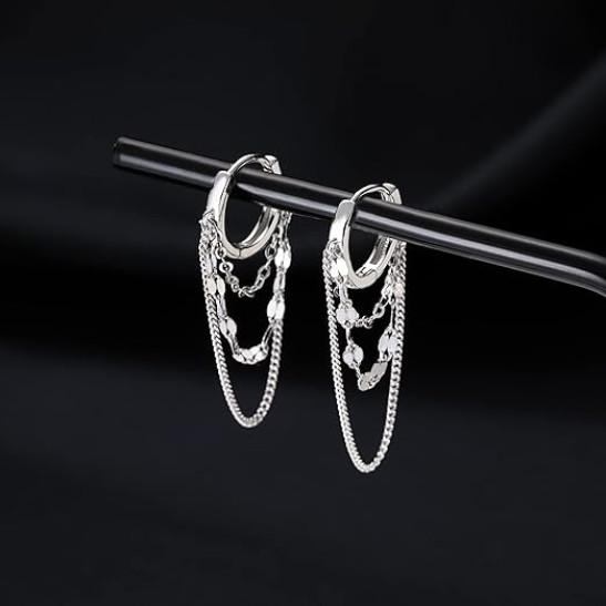 Reffeer 925 Sterling Silver Hoop Earrings Chain for Women Teen Dangle Earrings Huggie Earrings Tassel Drop Earrings
