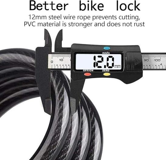 REHKITTZ Bike Lock Bicycle Locker Combination 5 Digit 120cm/12mm Long Cycle Cable Locks Bikes Chain High Security