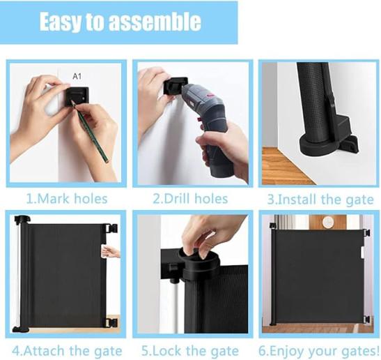 Retractable Baby Safety Gate Narrow to Extra Wide Metal Gate for Kids and Pets Extensions Baby Fence Pet Enclosure Simply Close Portable Folding Door Stair Hallways