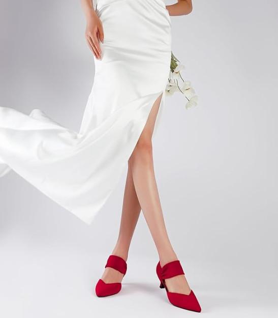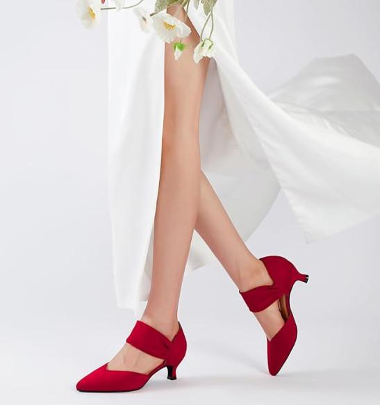 RIBONGZ Kitten Heels for Women Closed Toe Comfortable Low Heels Pointed Toe Sexy Slip on Pumps Bridal Party Dressy Shoes