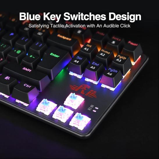 Rii Mechanical Gaming keyboard, RK908 60% Mechanical Keyboard(9 Backlight Modes) Blue Switches with 7 Color 88 Keys for PC Windows Mac keyboard-UK Layout