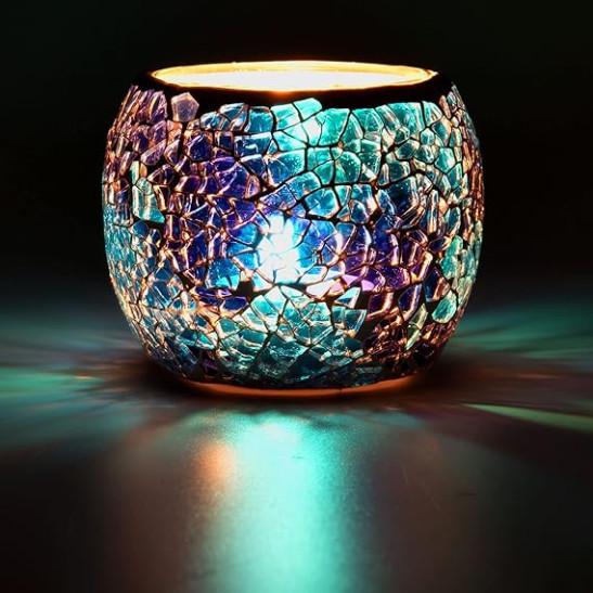 Romantic Larcenciel Mosaic Glass Candle Holder/Tea Light Holder/Vase/Pen Holder for Home Decoration Wedding Party (Blue)