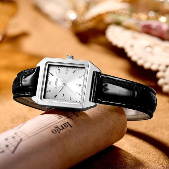 senstone Women's Quartz Dress Watch with Leather Strap, Waterproof, Casual
