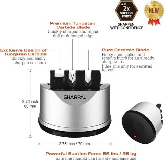 SHARPAL 191H Kitchen Chef Knife and Scissors Sharpener for Straight and Serrated Knives, 3-Stage Knife Sharpening Tool Helps Repair and Restore Blades