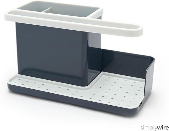 Simplywire – Sink Tidy/Caddy – Kitchen Sink Organizer – Removable Drip Tray – Non-Slip - Grey & White