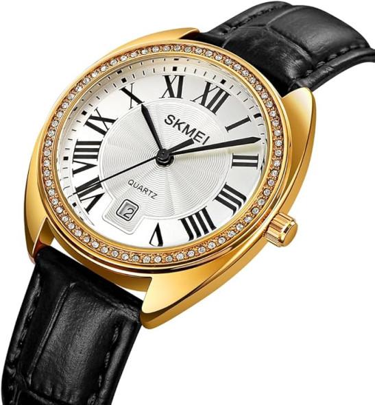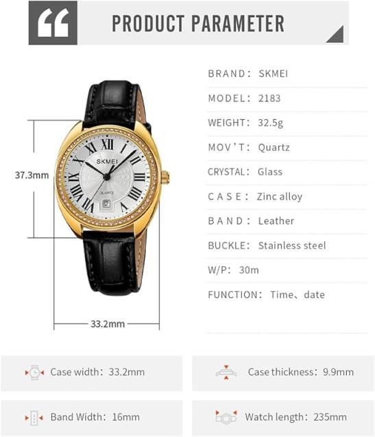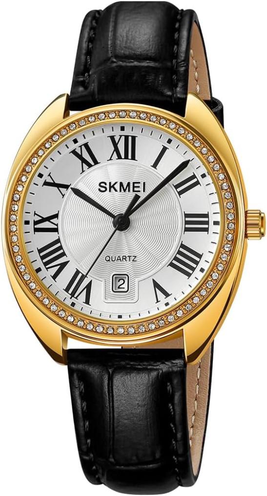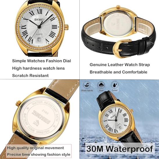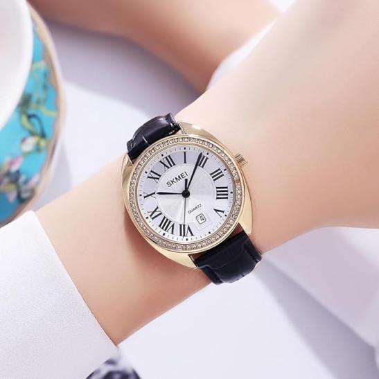 SKMEI Watch for Women Ladies Leather Band Fashion Simple Light Waterproof Casual Dress Analog Quartz Girl Female Gifts Black Wrist Watches