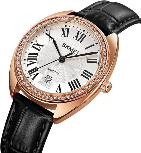 SKMEI Watch for Women Ladies Leather Band Fashion Simple Light Waterproof Casual Dress Analog Quartz Girl Female Gifts Black Wrist Watches