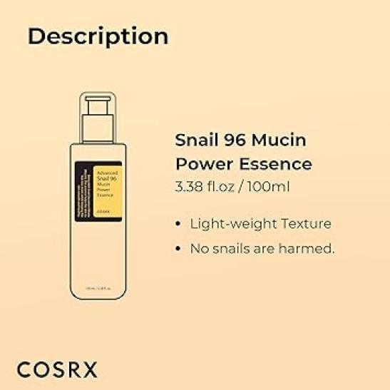 Snail 96 Mucin Power Essence 100ml, Skin Repair & Hydrating Serum, Snail Secretion Filtrate 96% & Hyaluronic acid, Korean Skincare, Animal Testing Free