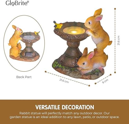 Solar Rabbit Bird Bath for Garden,Garden Ornament for Christmas Decorations & Home Decor