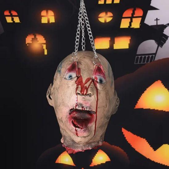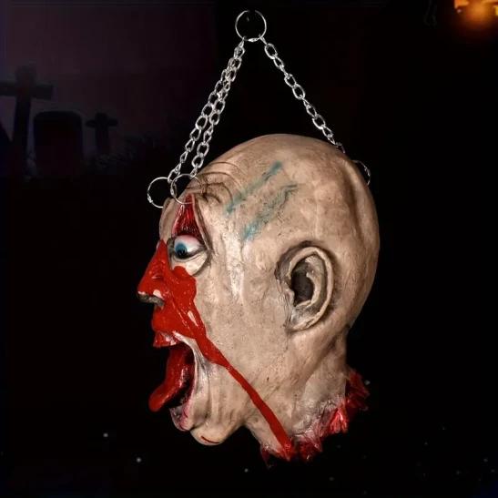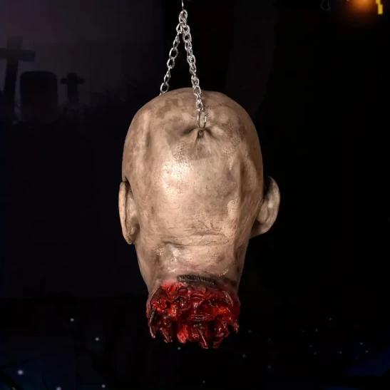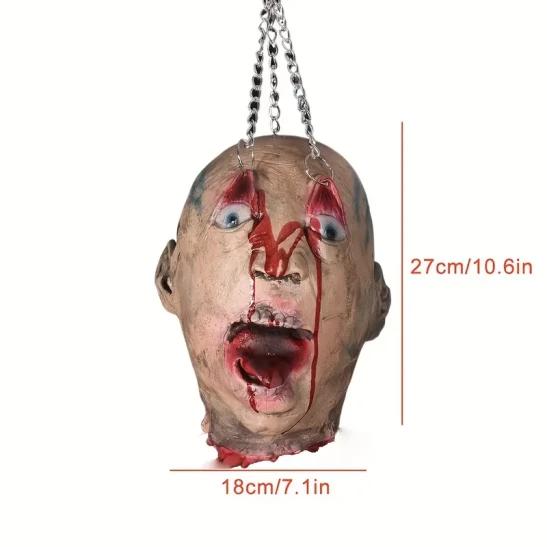 Spooky Halloween Decoration Iron Chain Latex Zombie Head