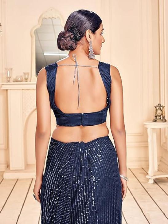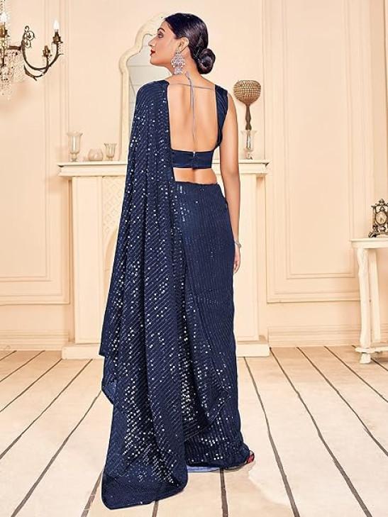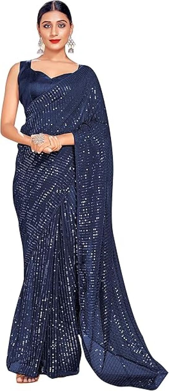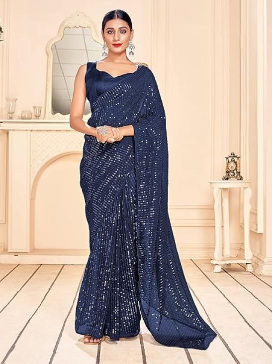 STYLE INSTANT Sarees For Women Bollywood Faux Georgette Saree || Sequence Embroidered Indian Sari & Unstitched Blouse