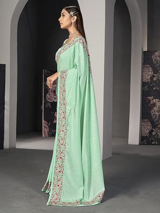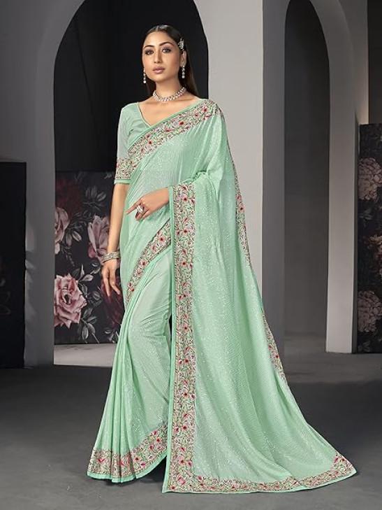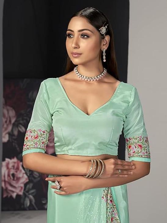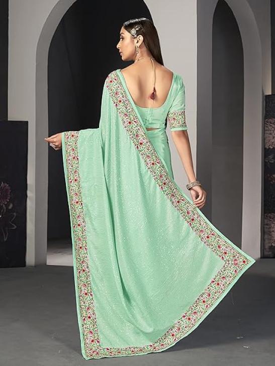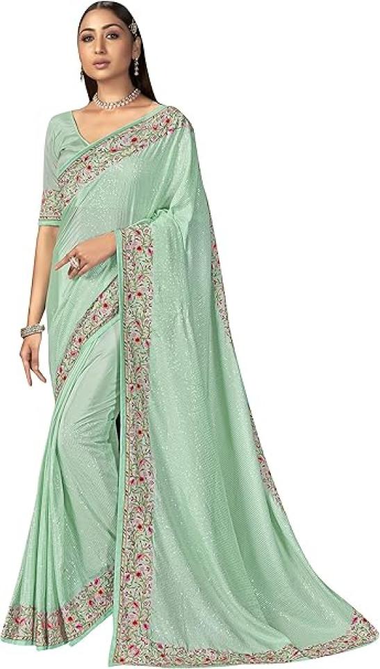 STYLE INSTANT Sarees For Women Bollywood Faux Georgette Saree || Sequence Embroidered Indian Sari & Unstitched Blouse