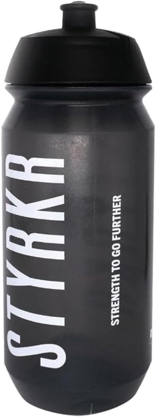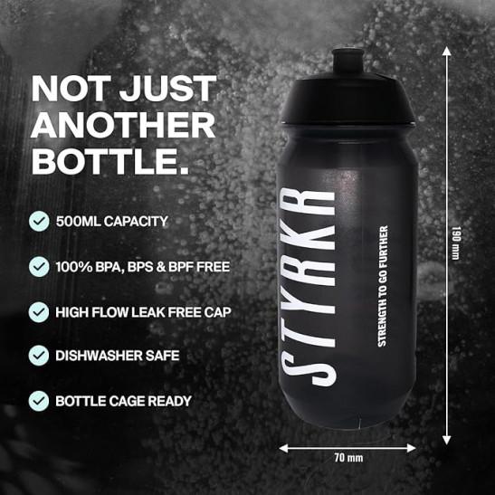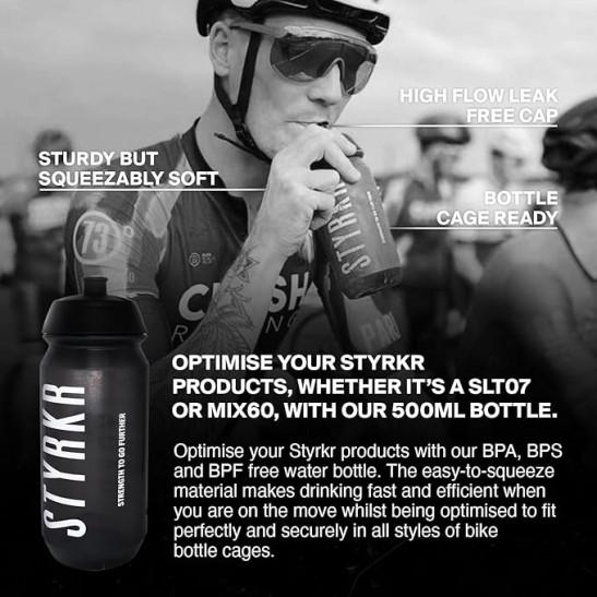 STYRKR Sports Water Bottle 500mll Cycling Water Bottle in Clear Transparent Black - Squeezable, Wide Mouth & Easy Clean - Bike, Sports or Gym