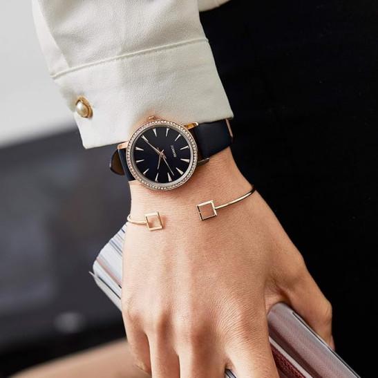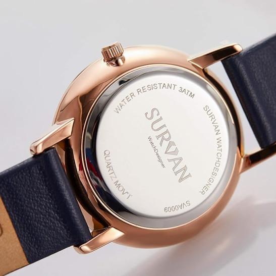 SURVAN WatchDesigner Women's Watches with Stainless Steel Square Round Dial Quartz Watch with Satin Genuine Leather Strap Elegant Minimalist Waterproof
