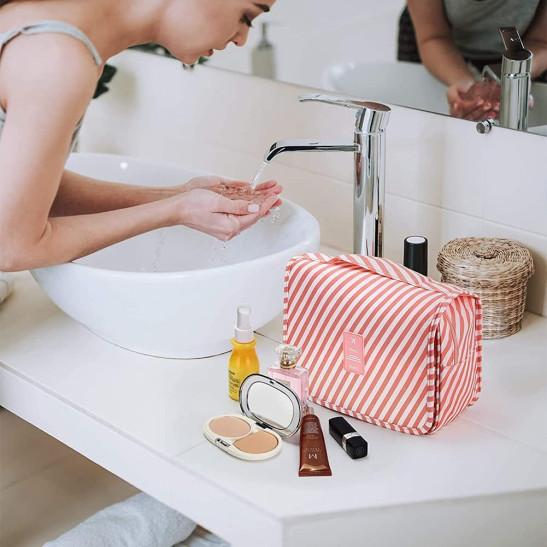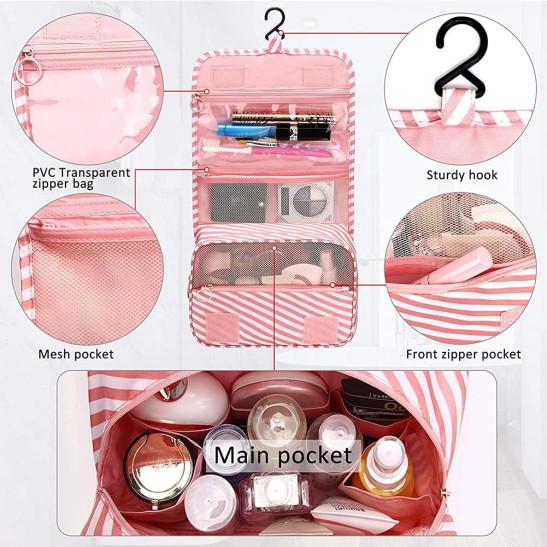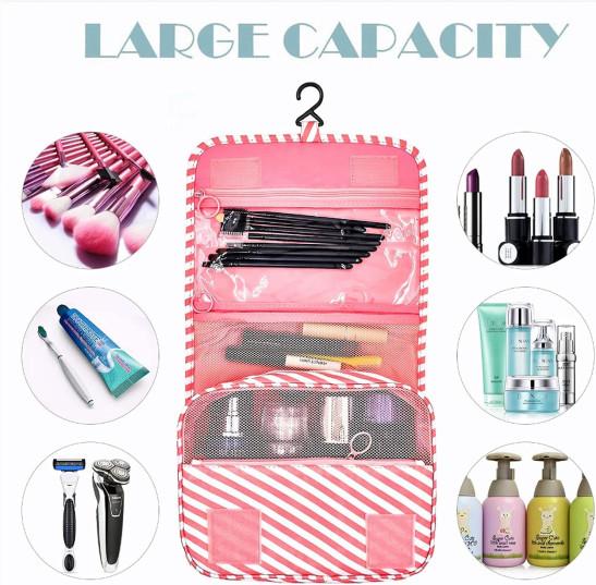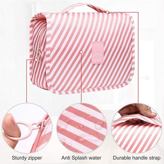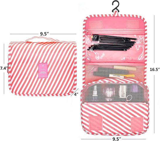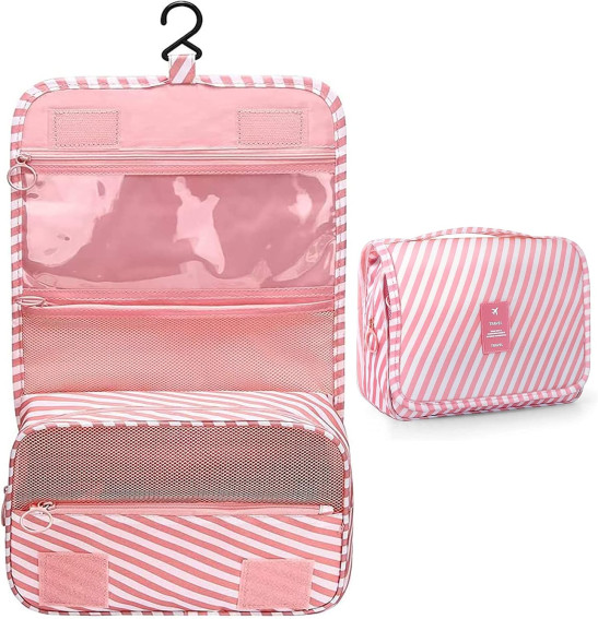 SxoSyo Toiletry Bag for Women Hanging Travel Bag for Toiletries Large Capacity Travelling Accessories Makeup Bags Organizer Cosmetic Bag Waterproof Bathroom Bag, Pink stripes, S, Portable
