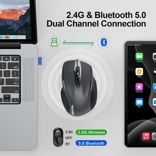 TECKNET Bluetooth Mouse, Wireless Mouse Bluetooth Rechargeable (Tri-Mode: BT 5.0/3.0+2.4G), 4800DPI Adjustable, Silent Ergonomic Wireless Mouse for Laptop PC Computer, Windows Mac OS,6 Buttons, Grey
