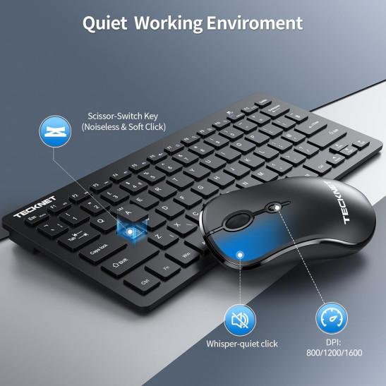 TECKNET Mini Wireless Keyboard and Mouse Set, 2.4G Cordless USB Keyboard and Silent Mouse Comb with Nano USB Receiver, 12 Months Battery Life, 12 Multimedia Shortcuts for Computer, PC, Laptop, Black
