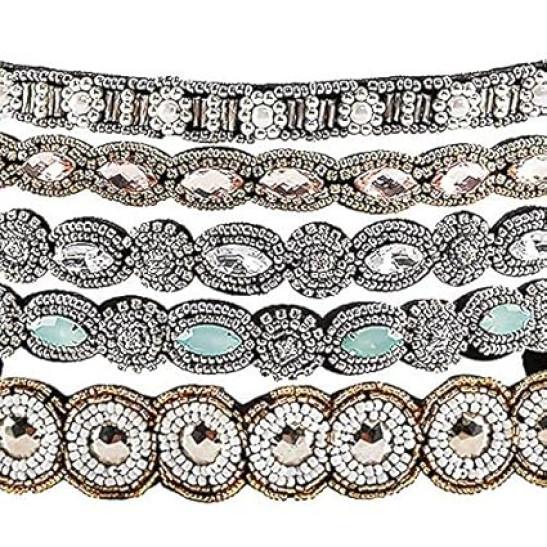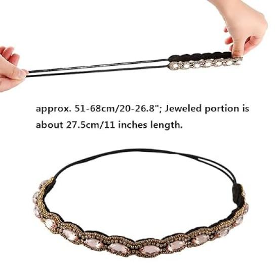 Teenitor 5pcs Hairbands for Women, 5 Rhinestone Beaded Headbands, Head Bands for Women's Hair Fashionable Handmade Crystal Beaded Elastic hairbands, 20-26.8"(51-68cm), 1 Count (Pack of 5), HAIRBAND