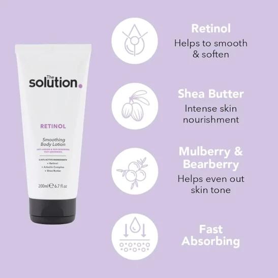 The Solution Retinol Smoothing Body Lotion (200ml). Retinol Cream with Shea Butter,