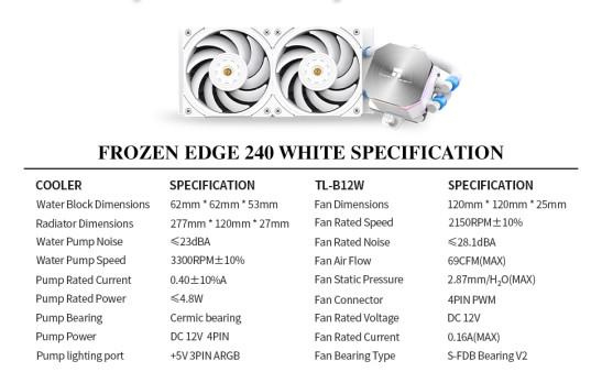 Thermalright Frozen Edge 240 White CPU Liquid Cooler,Efficient PWM Controlled Pump 3300RPM,12CM PWM Fan,Water Cooling Computer Parts,for AMD AM4/AM5,Intel 1150/1151/1200/2011/1700,Computer AIO Cooler