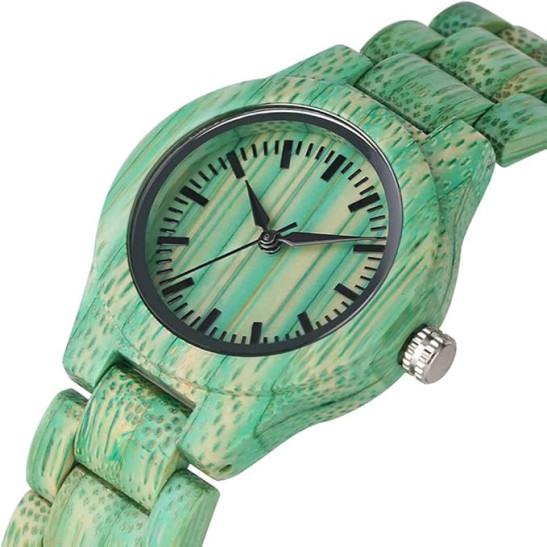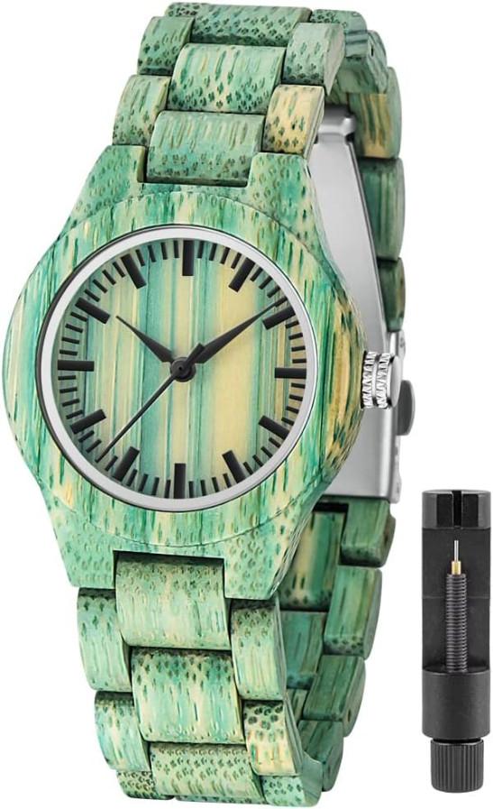 Tiong Wooden Watches for Women Men Inverted Geometric Zebra Wood Watch Unique Elegant Quartz Wooden Wrist Watch Hand-Made with Bamboo Bracelet Unisex