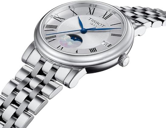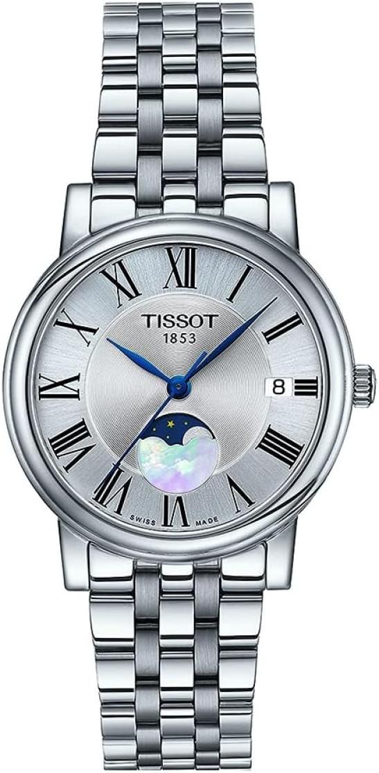 Tissot Women's Carson Moonphase 316L Stainless Steel case Swiss Quartz Watch Strap, Gray, 16 (Model: T1222231103300), Grey, Quartz Watch, Grey, Quartz Watch
