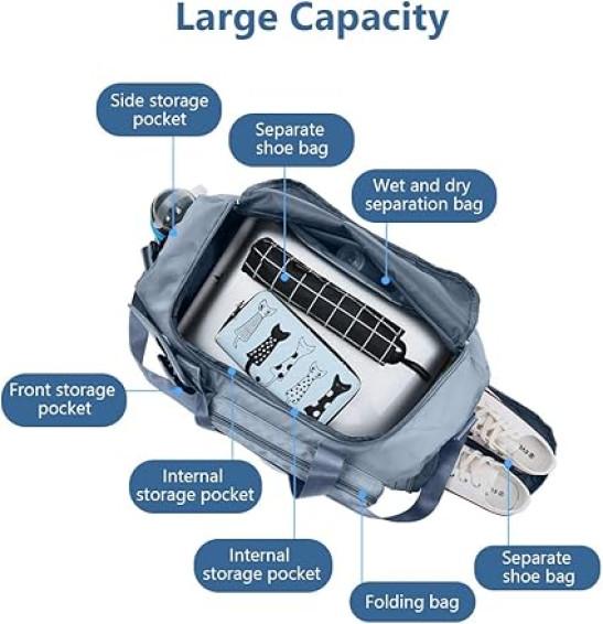 Travel Duffel, Foldable Gym Overnight Weekend Bags for Women - Lightweight with Separation, Large Holdall Cabin Bag