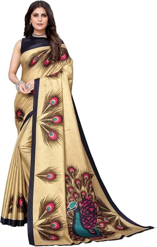 TreegoArt Fashion Women's Handloom Art Silk Printed Party Wear Indian Saree With Unstitched Blouse Piece