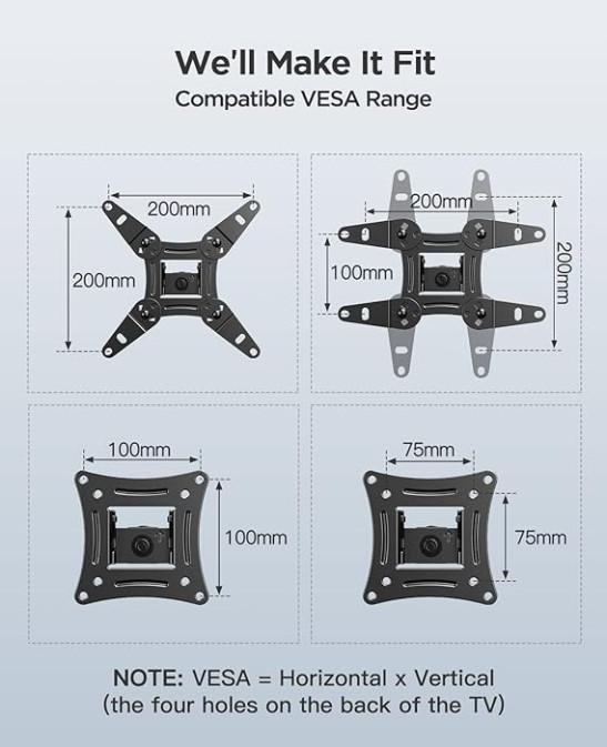 TV Wall Bracket for 13-42 inch TVs, Swivels Tilts PERLESMITH TV Wall Mount for Flat & Curved TV,VESA 75x75mm to 200x200mm up to 20kg