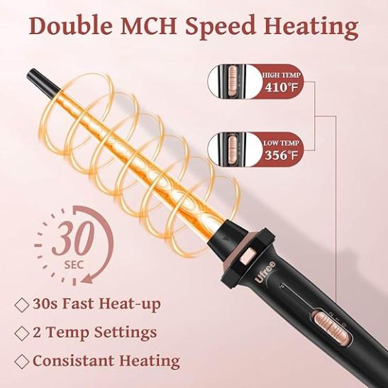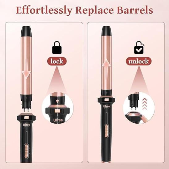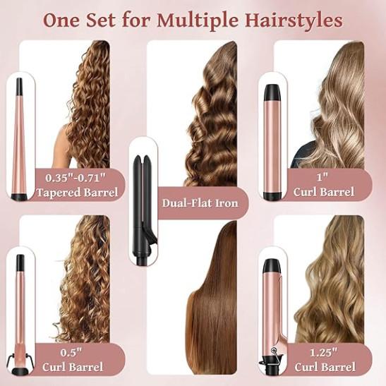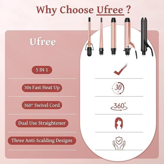 Ufree 5 in 1 Curling Iron with Interchangeable Ceramic Barrels (0.35"-1.25"), Curling Wand Set with Flat Iron Hair Straightener, Professional Instant Heat Up, Dual Voltage Hair Curler, Women Gifts