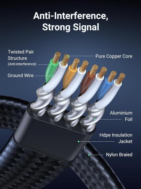 UGREEN Ethernet Cable 10M, Cat 8 Internet Cable Flat High-Speed 40Gbps 2000Mhz Network Cable