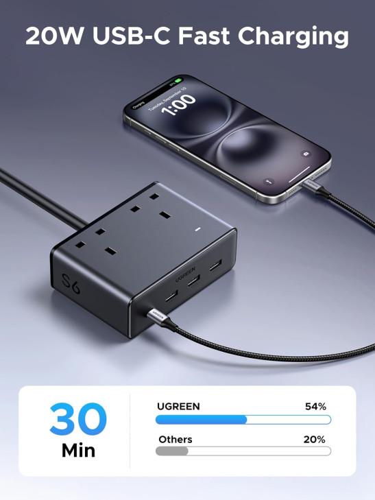 UGREEN Extension Lead with 4 USB Slots, 2 Way 2990W Max Multiple Plug
