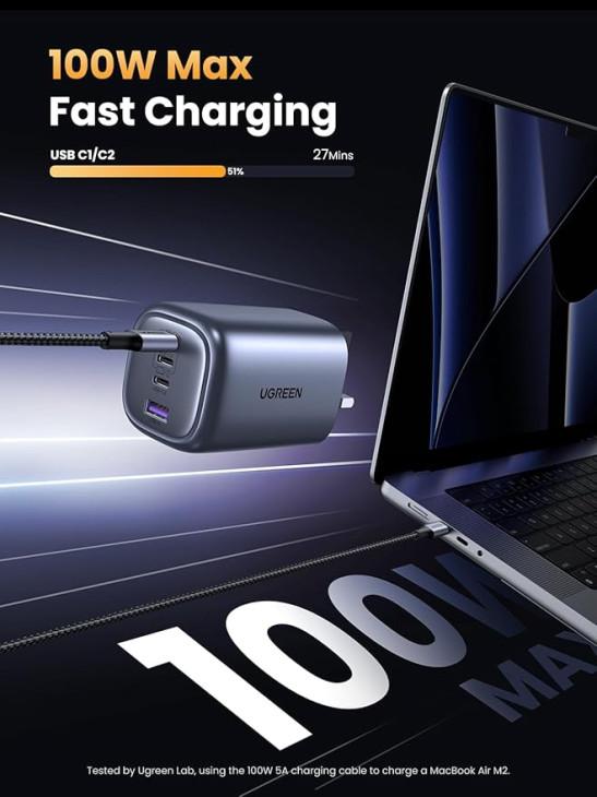 UGREEN USB C Charger 100W Fast Charger Plug Nexode 4-Port GaN Laptop Charger