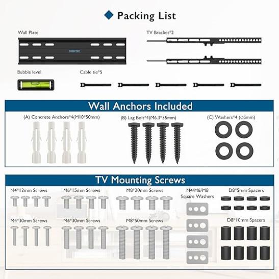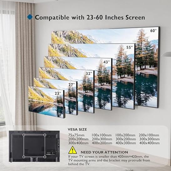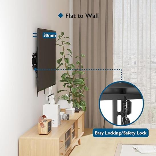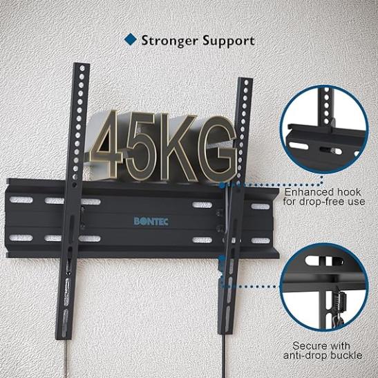 Ultra Slim TV Wall Bracket Mount for 23-60 inches , BONTEC TV Wall Mount up to VESA 400x400mm, 45kg Weight Capacity with Spring Locking System