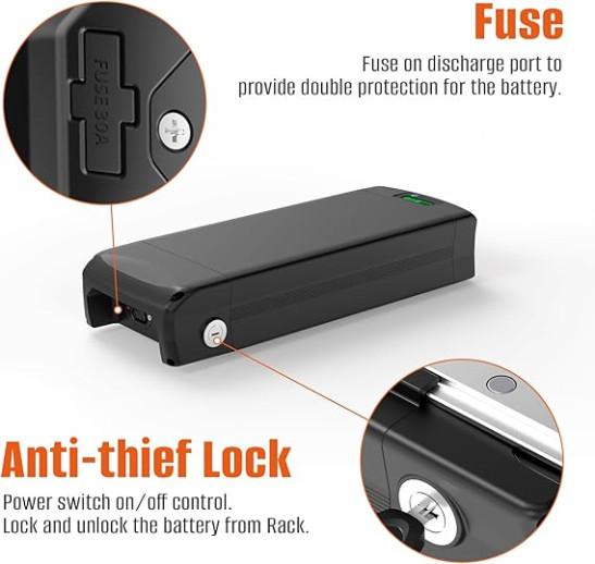 UPP 48V 27Ah Ebike Battery with Rear Rack- Bike Battery