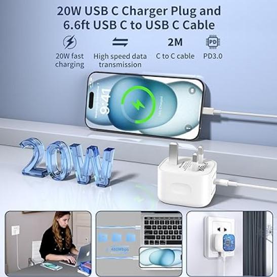 USB C Fast Charger Plug with 6FT USB C to C Cable