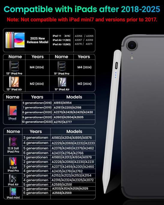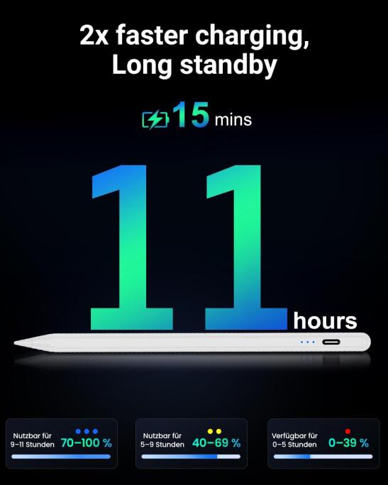 Variglas Pencil for iPad - 2018-2025 15 Minutes Fast Charging, Palm Rejection,Tilt Sensitivity, Stylus Pen Compatible with iPad Pro 11"/12.9"/13", 11/10/9/8/7/6th Gen, Air 3-6, Mini 5/6