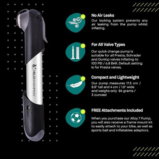 VeloChampion Mini Bicycle Pump with Frame Mount