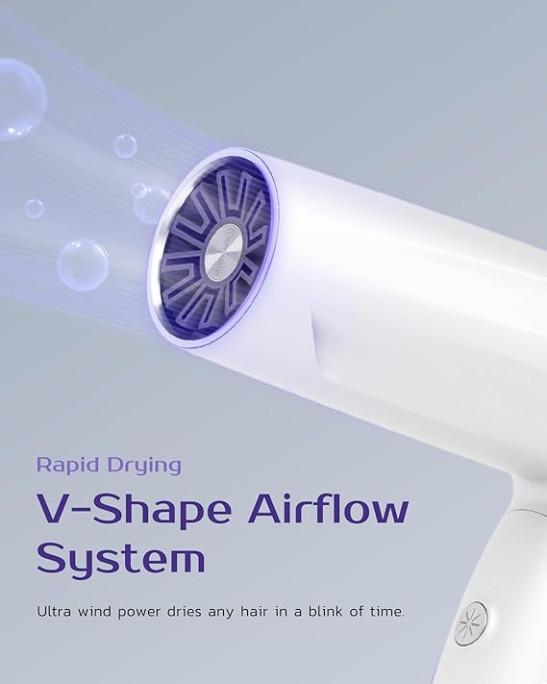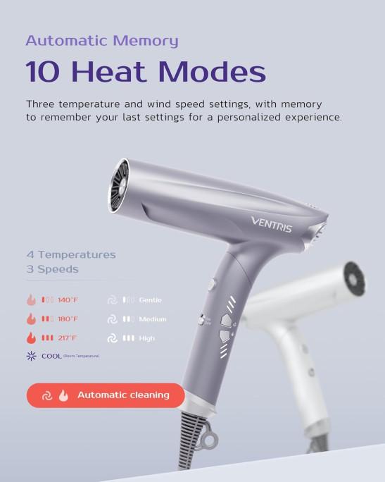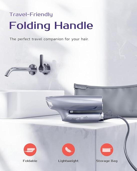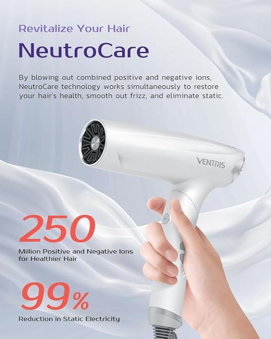VENTRIS Ionic Hair Dryer Magnetic Diffuser,High Speed Styling Blow Dryer, Lightweight & Foldable for Travel Hair Dryer, Positive Negative Ion blowdryer, Hair Dryer