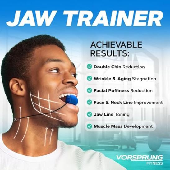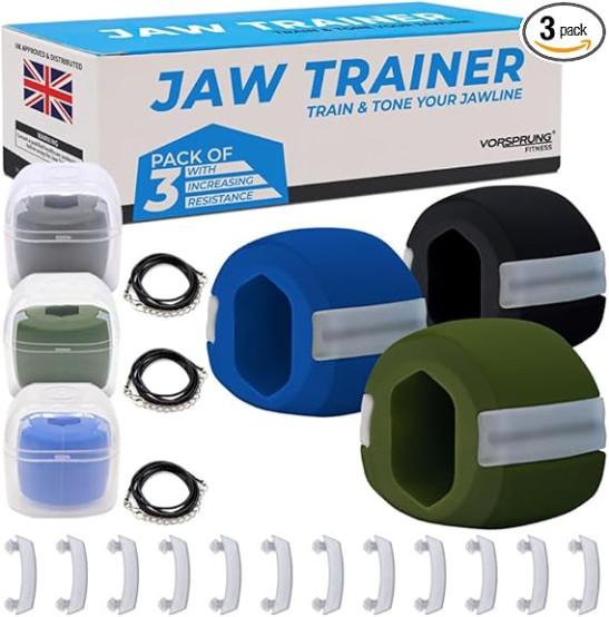 VORSPRUNG®Jaw Exerciser, Trainer to Achieve a Sharper Jawline with Three Levels of Resistance - Jaw Trainer for an Enhanced Facial Definition - Pack of 3 with FREE Biting Strips & 3 Necklaces
