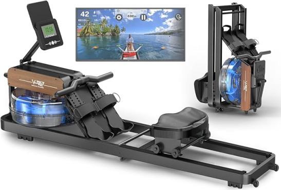 VOWVIT Rowing Machine for Home Gym, Rower Machines with 6-level Water Resistance, LCD Monitor,Support Bluetooth & Kompatible with Apps