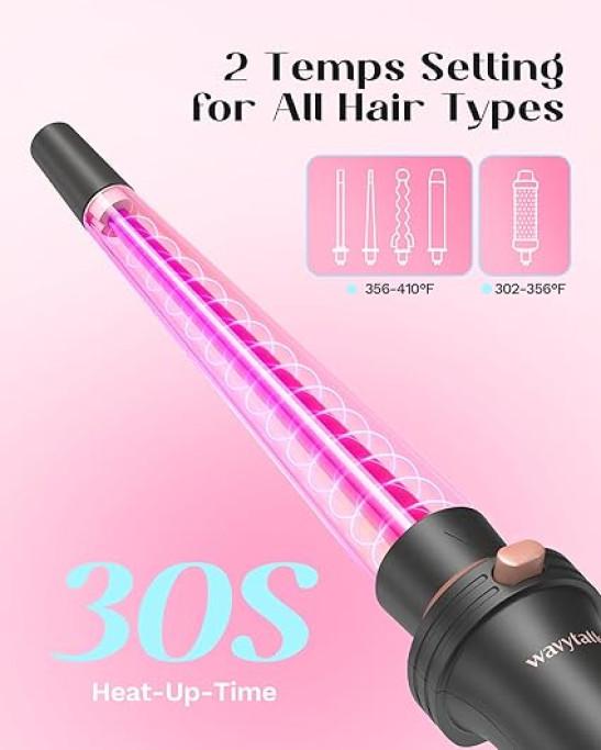 Wavytalk 5 in 1 Curling Iron,Curling Wand Set with Curling Brush and 4 Interchangeable Ceramic Curling Wand(0.5”-1.25”),Instant Heat Up,Include Heat Protective Glove & 2 Clips