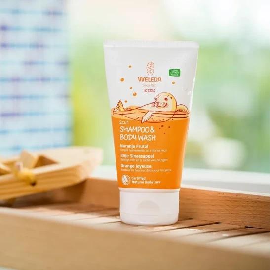 Weleda Kids Shampoo and Body Wash 2in1, Kids Shampoo, Kids Body Wash, Happy Orange